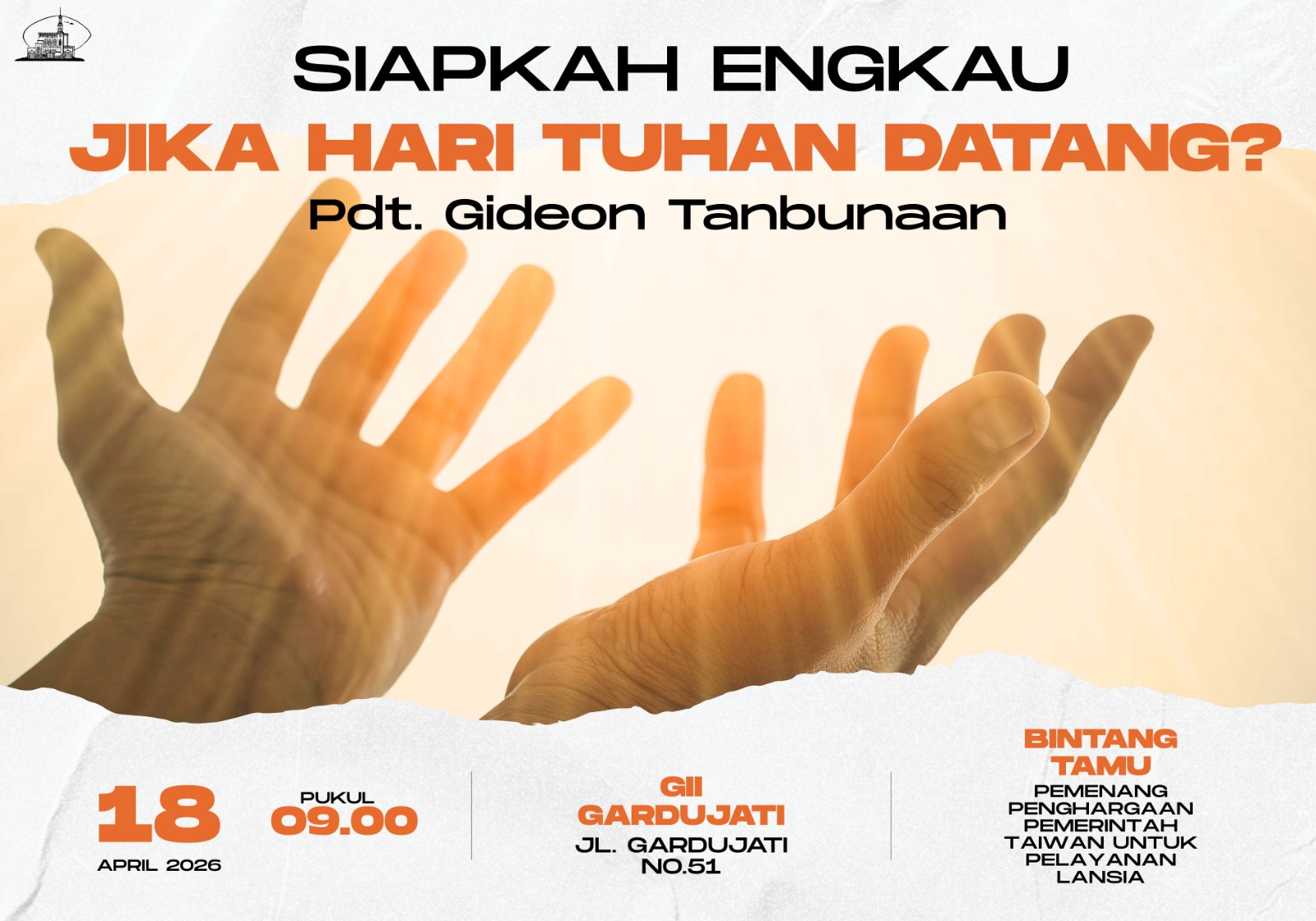 KKR Usinda yang berjudul "Siapakah Engkau Jika Hari Tuhan Datang?", pada hari Sabtu, 18 April 2026, Pkl 09.00 WIB yang bertempatkan di GII Hok Im Tong Gardujati.